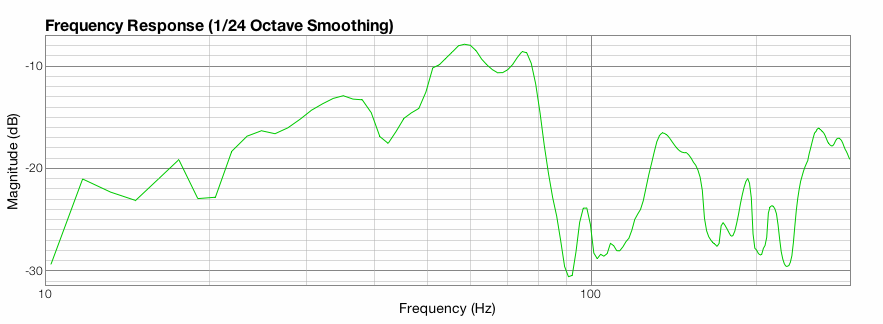 range frequency response Set averaging to 1/24 octave under theFrequency > Smoothing in the top menu, and Frequency Range through the horizontal bar on the right side of the main measurement window to end at 300Hz. I turned off my EQ for these measurements, that's why they look ugly! |