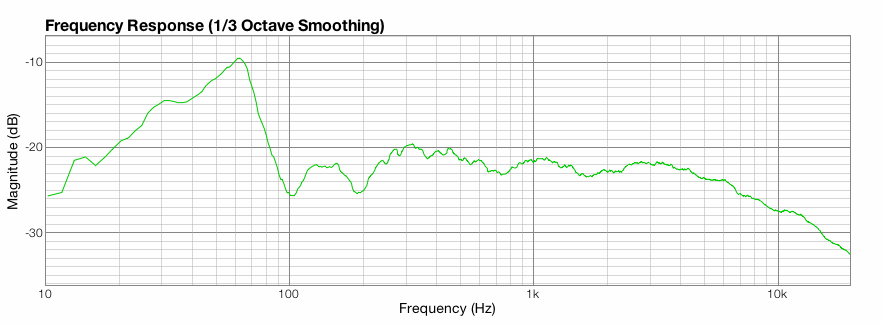 After applying 1/3 octave averaging we get the graph in Figure 11 below, which is much easier to read and see the overall response without distraction.